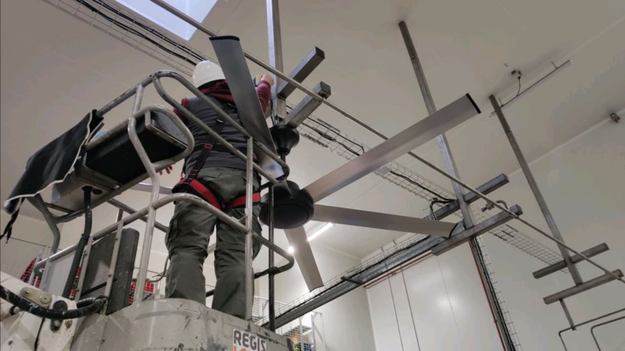 The AIRSLIM S+ fan is engineered for medium‑height ceilings (3‑6 m) in indoor or outdoor settings, offering large airflow with minimal energy use.